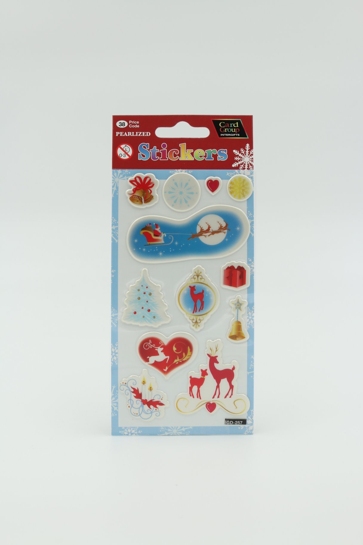 Pärl läikega jõulukleebiseid kaunistavad erinevad jõuluelemendid.