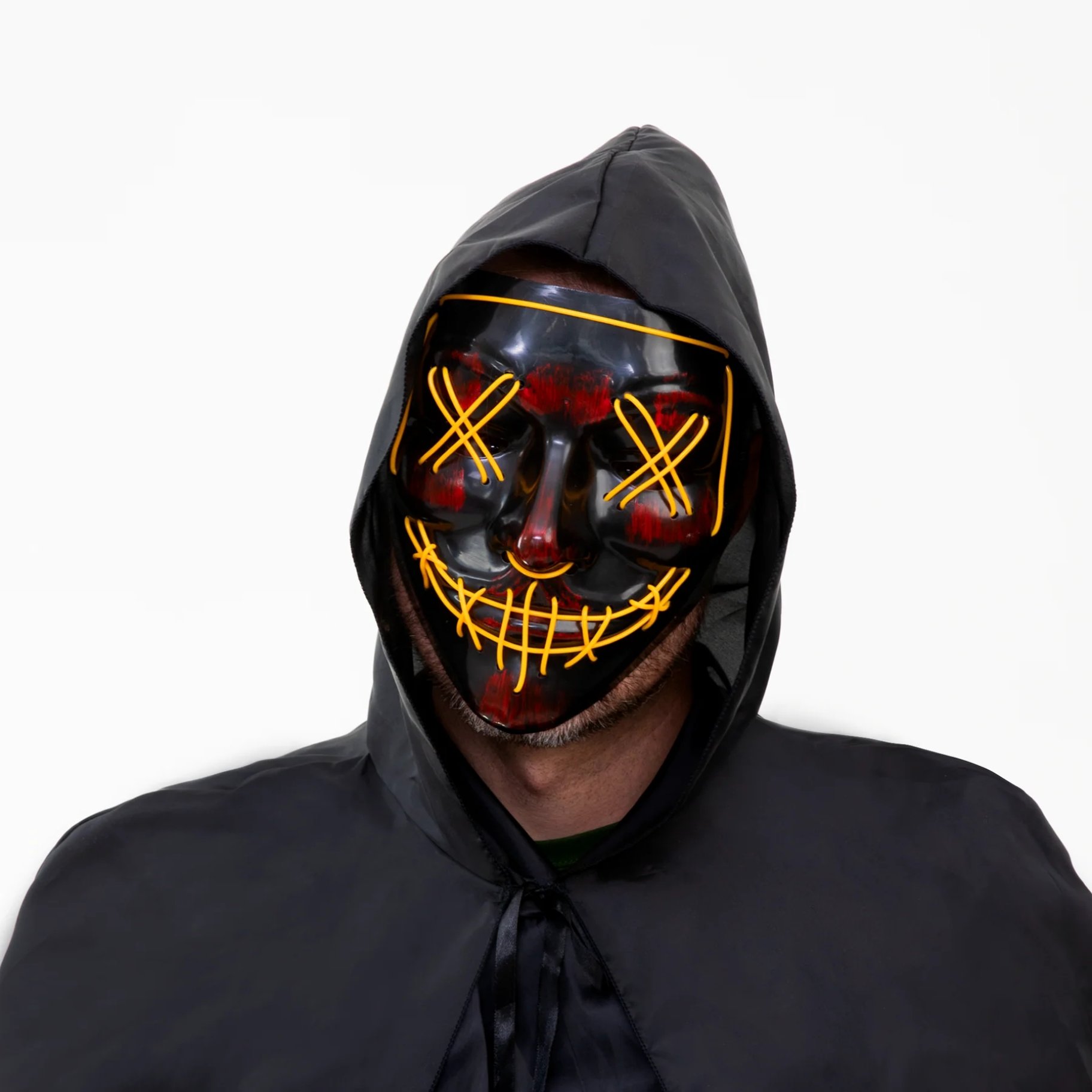 Ideaalne mask halloweeni ja kostüümipidude jaoks. Mask on inspireeritud kuulsast õudusfilmist The Purge. Toiteallikaks on 2 x AA patareid (ei kuulu komplekti)