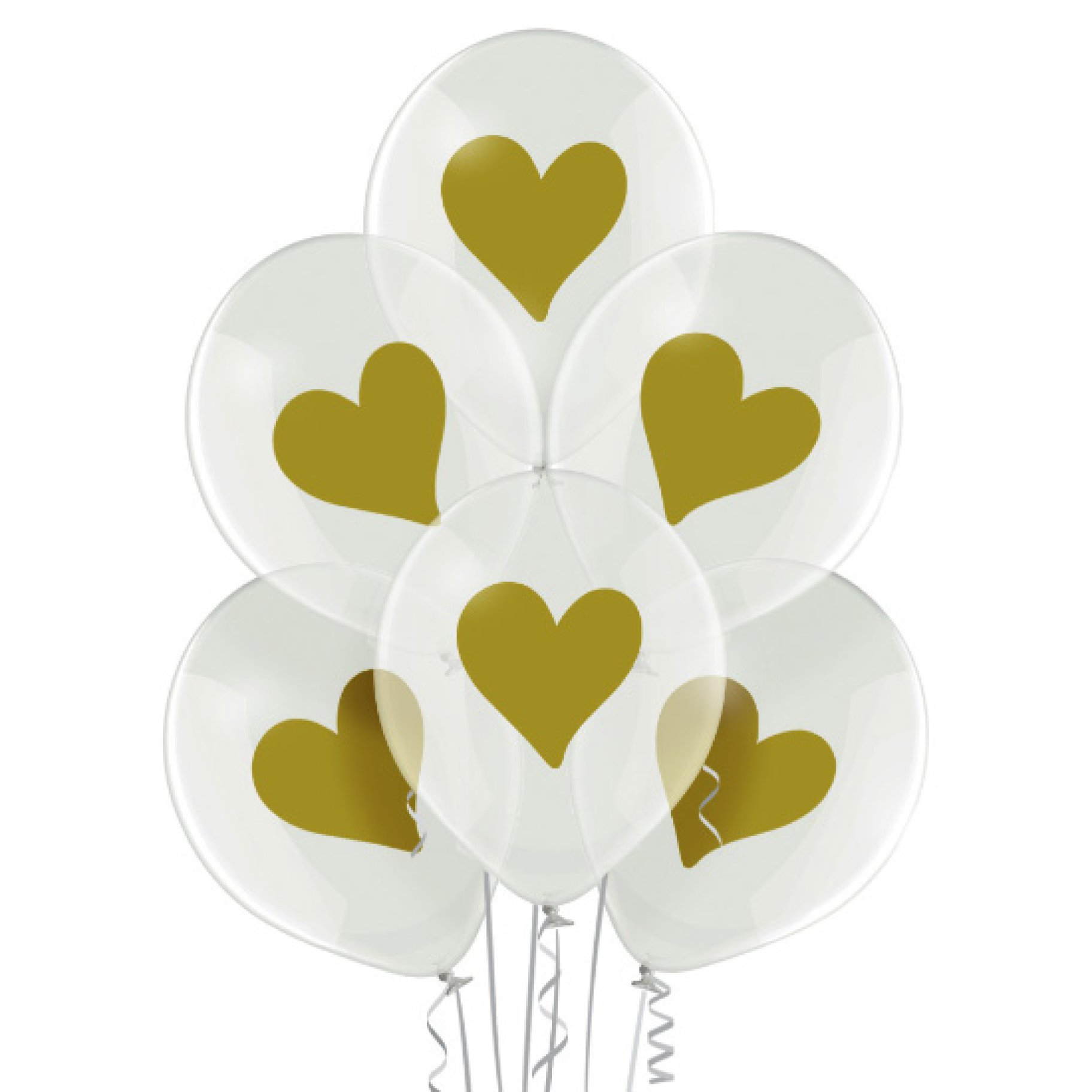 Õhupallid "Läbipaistev Kuldsete Südametega"