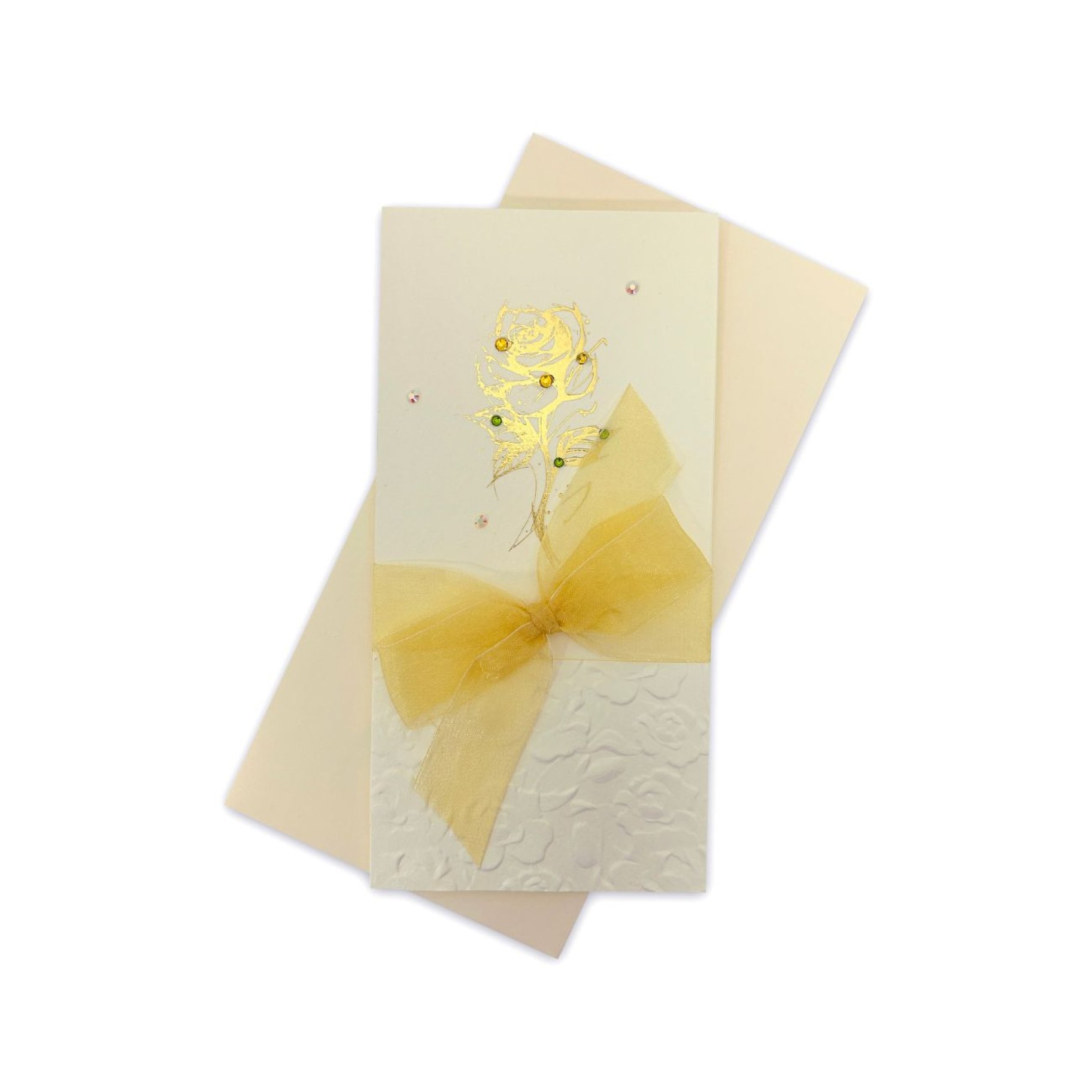 Käsitöökaart "Kuldne roos valge siidilipsuga"