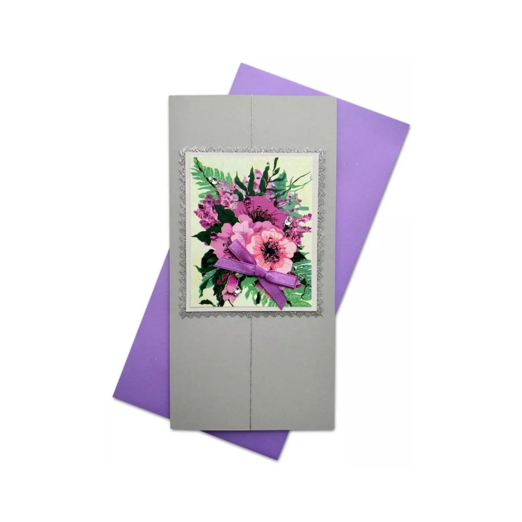 Käsitöökaart "Roosa kimp kivikestega"
