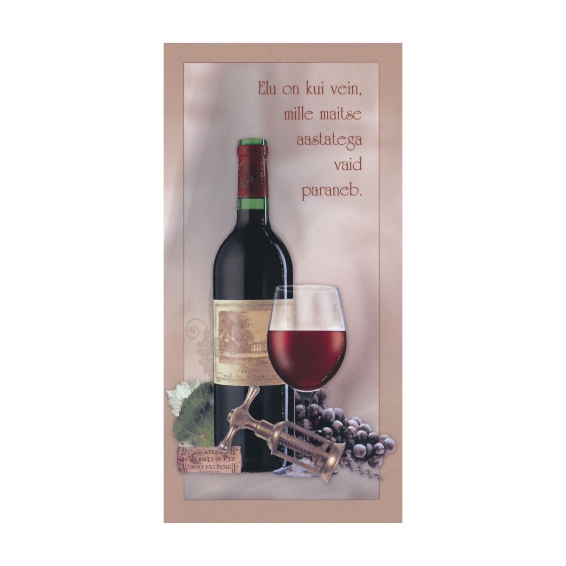 Õnnitluskaart "Elu on kui vein, mille maitse aastatega vaid paraneb