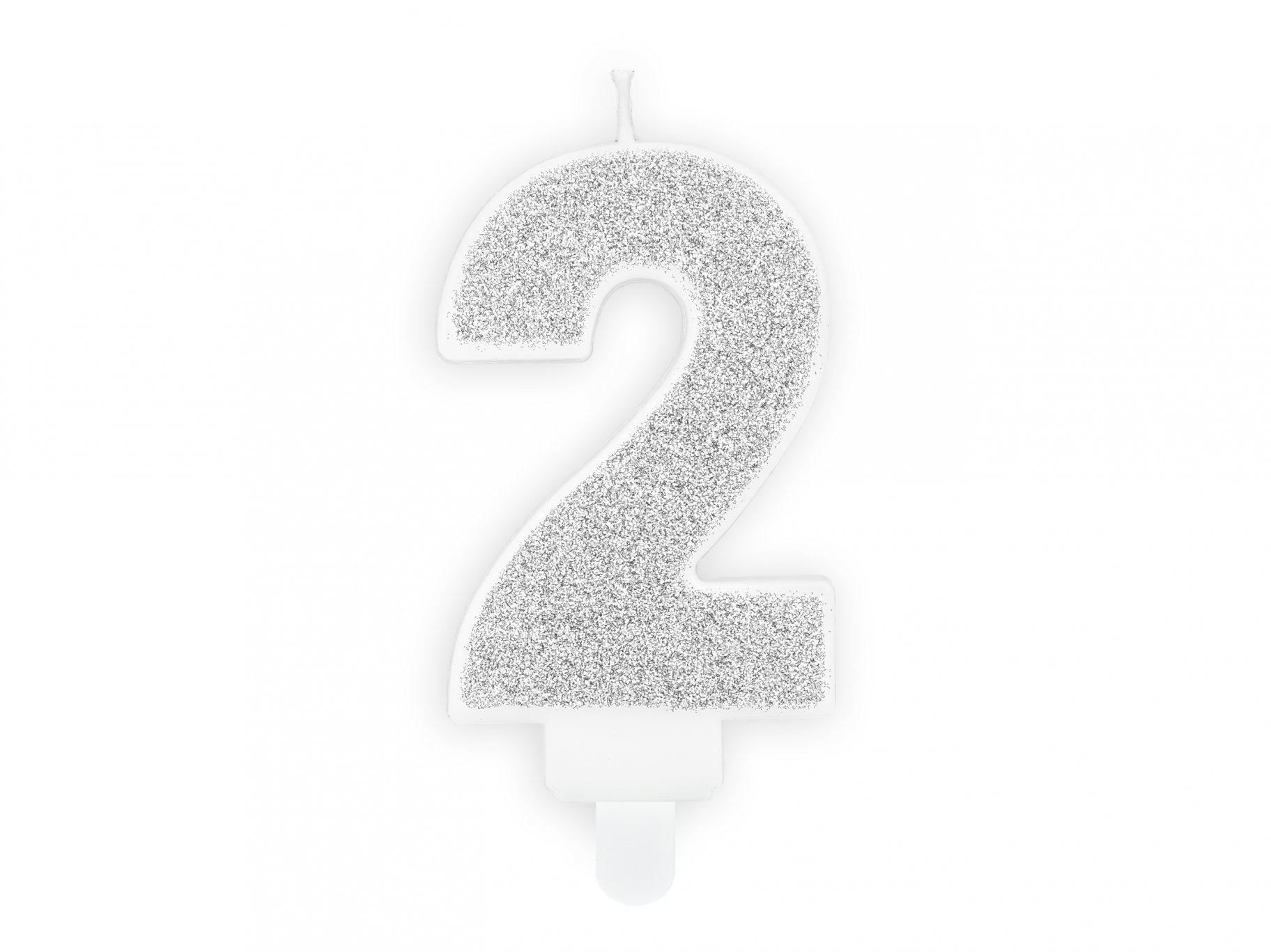 Valge küünal mis on kaetud hõbedase glitteriga.