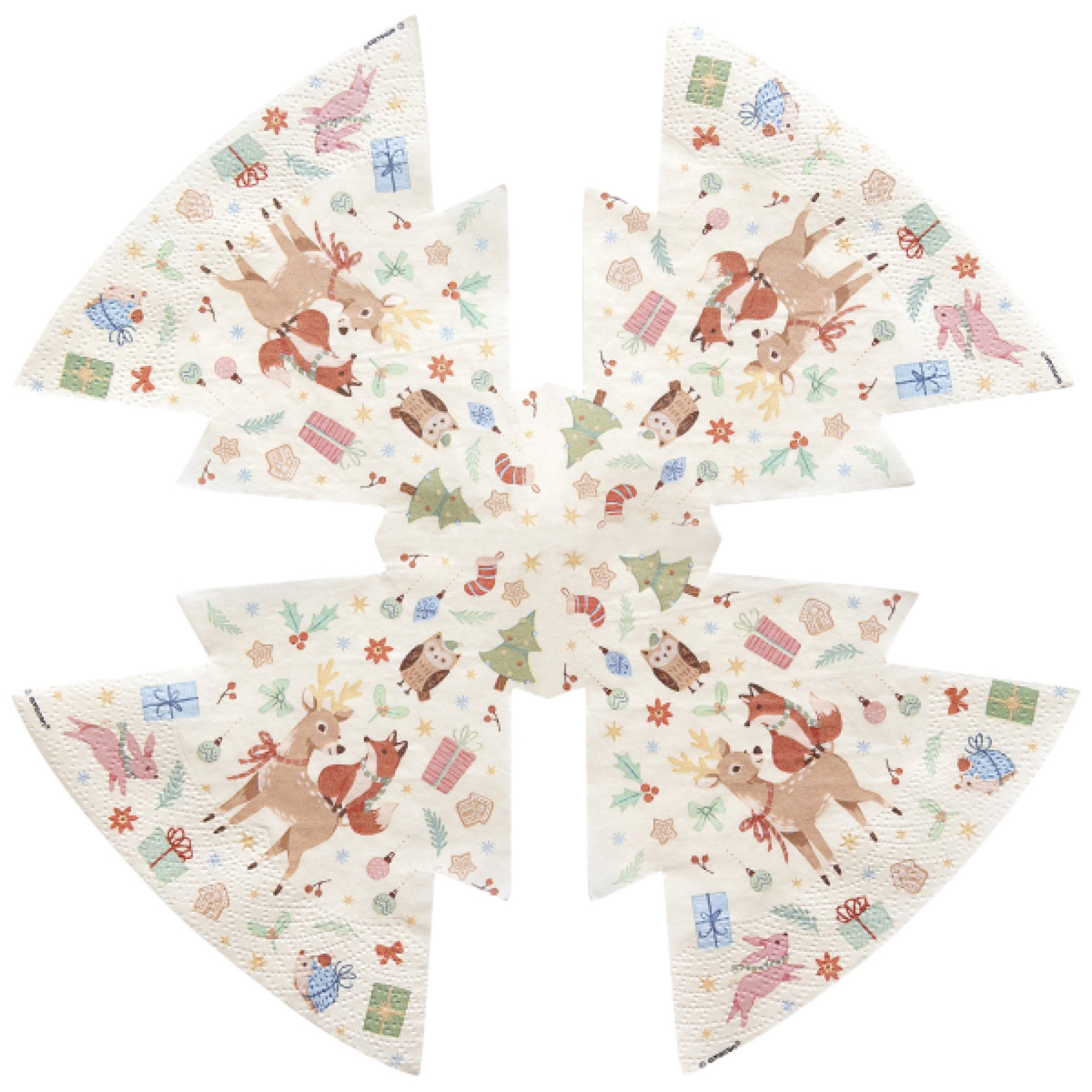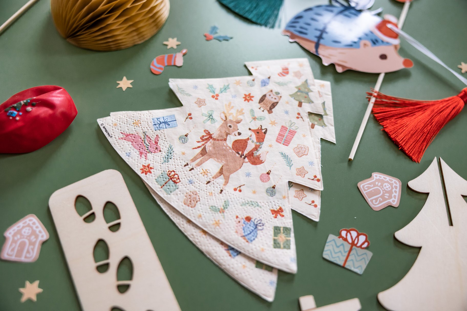 Kuuse kujulised salvrätikud armsate metsaloomadega on suurepärased lauakatted sügistalvisel sünnipäevapeol või erinevatel sündmustel nagu jõuluõhtu, talvepiknik.