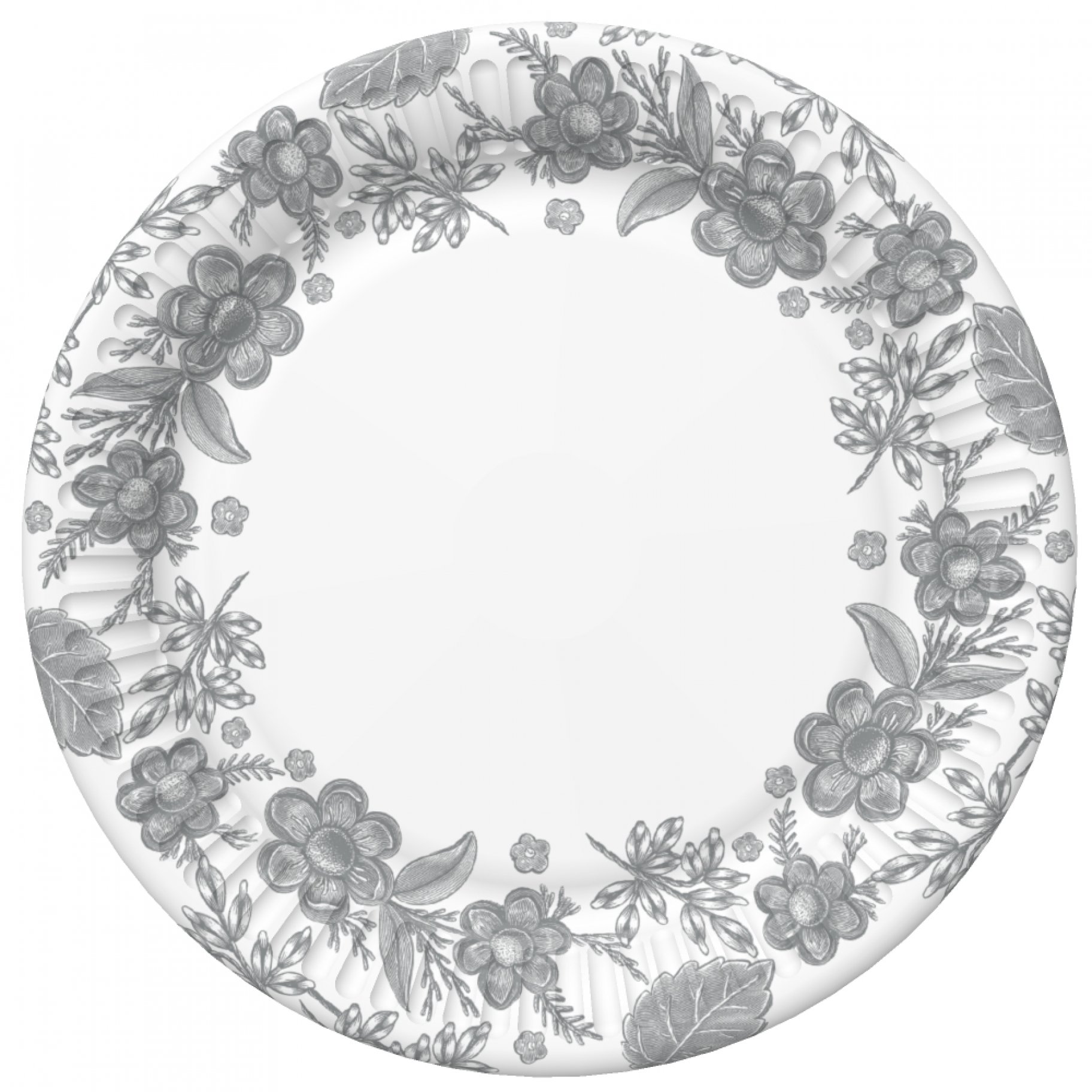 Suured papptaldrikud "Hõbedane lillemuster"