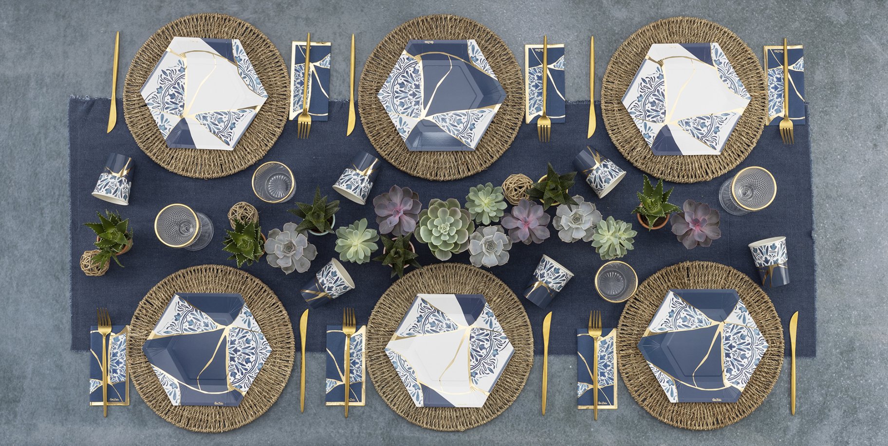 Suured papptaldrikud "Sinine kintsugi muster"